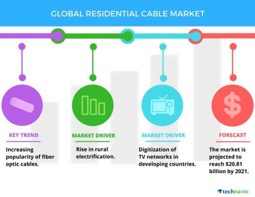 國際商場研討組織Technavio發布陳述稱,到2021年,全球住所電纜商場規模將到達208.1億美元,期間年復合增率超越5%。